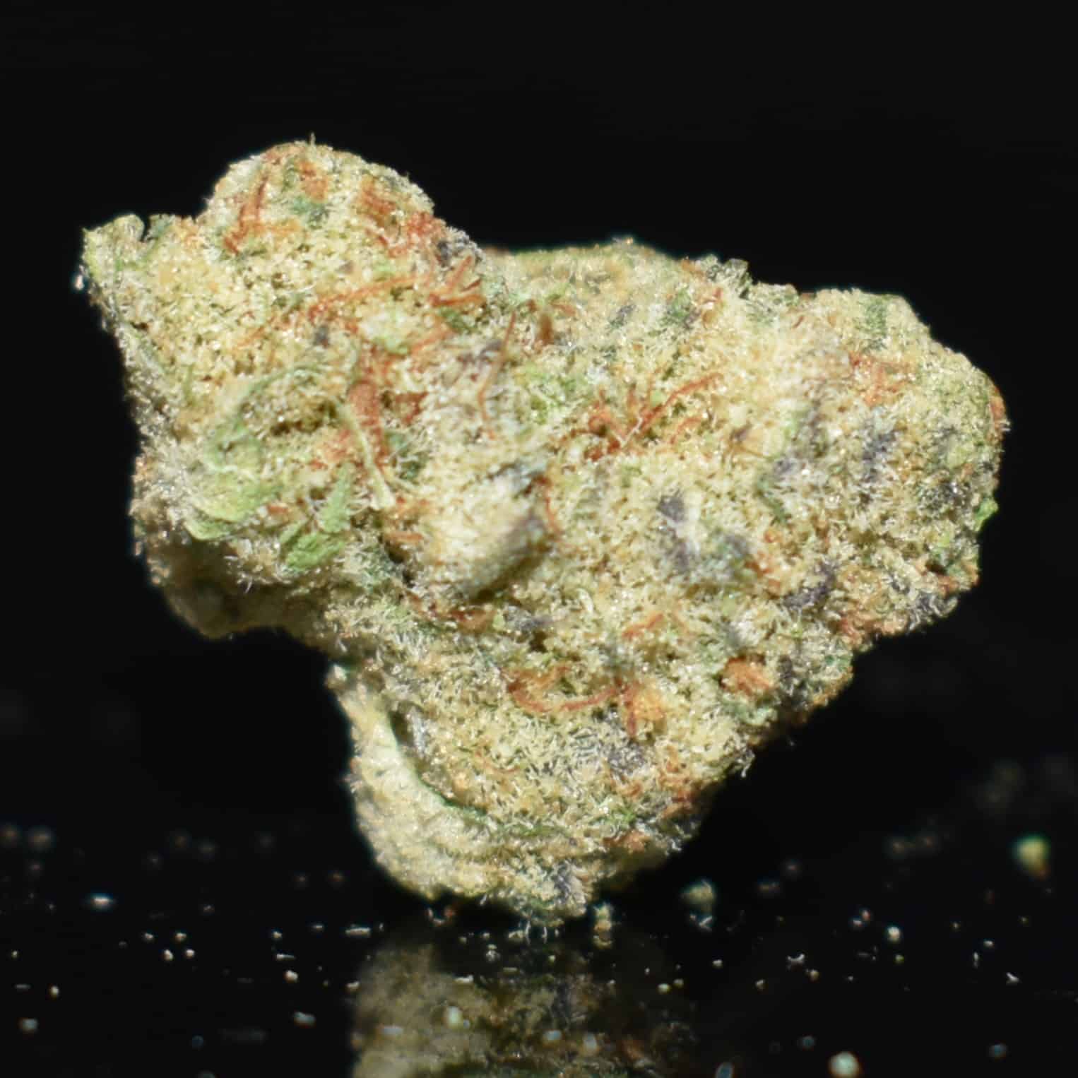 âś” Appearance: Small but dense green and purple buds covered in frosty trichomes